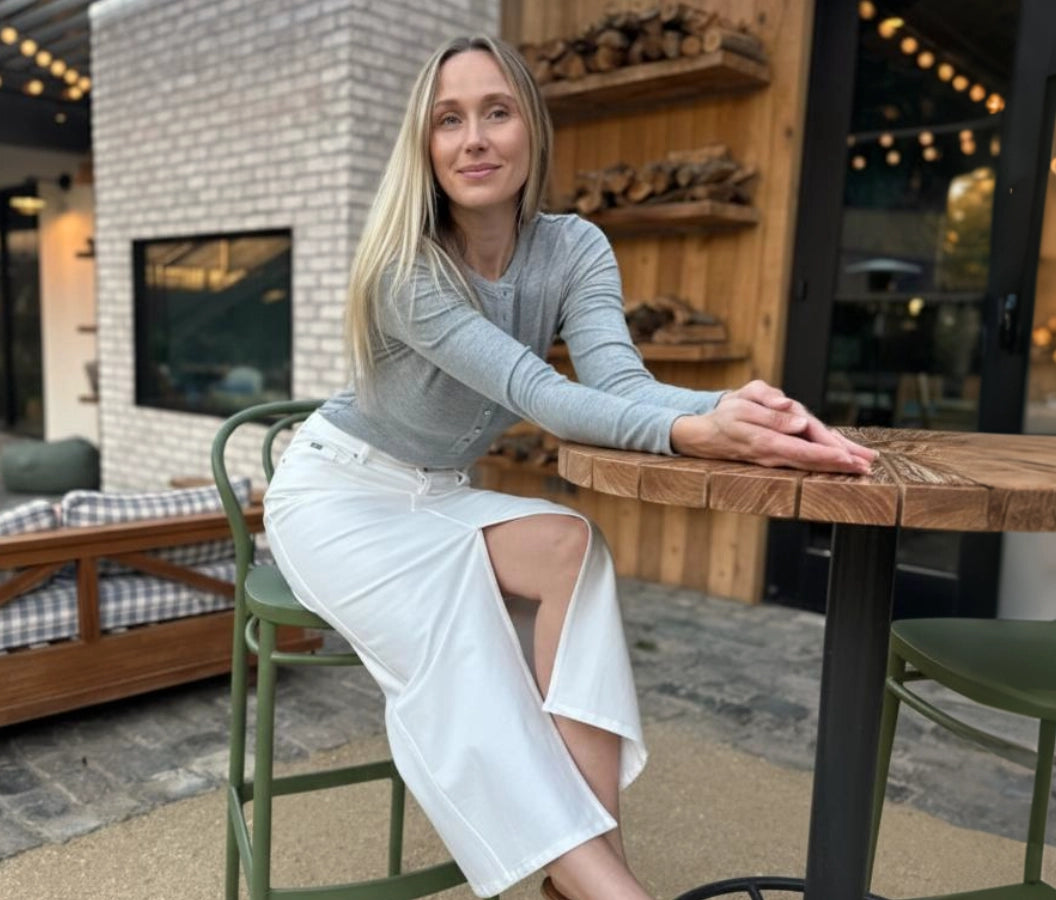 Women’s Essential Long-Sleeve Henley Bodysuit - Light Grey