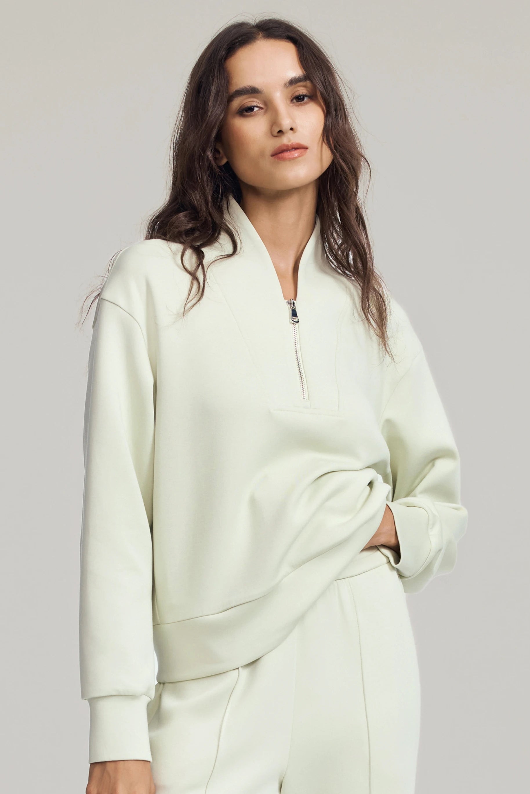 Women’s Luxe Half-Zip Pullover - Pistachio Cream