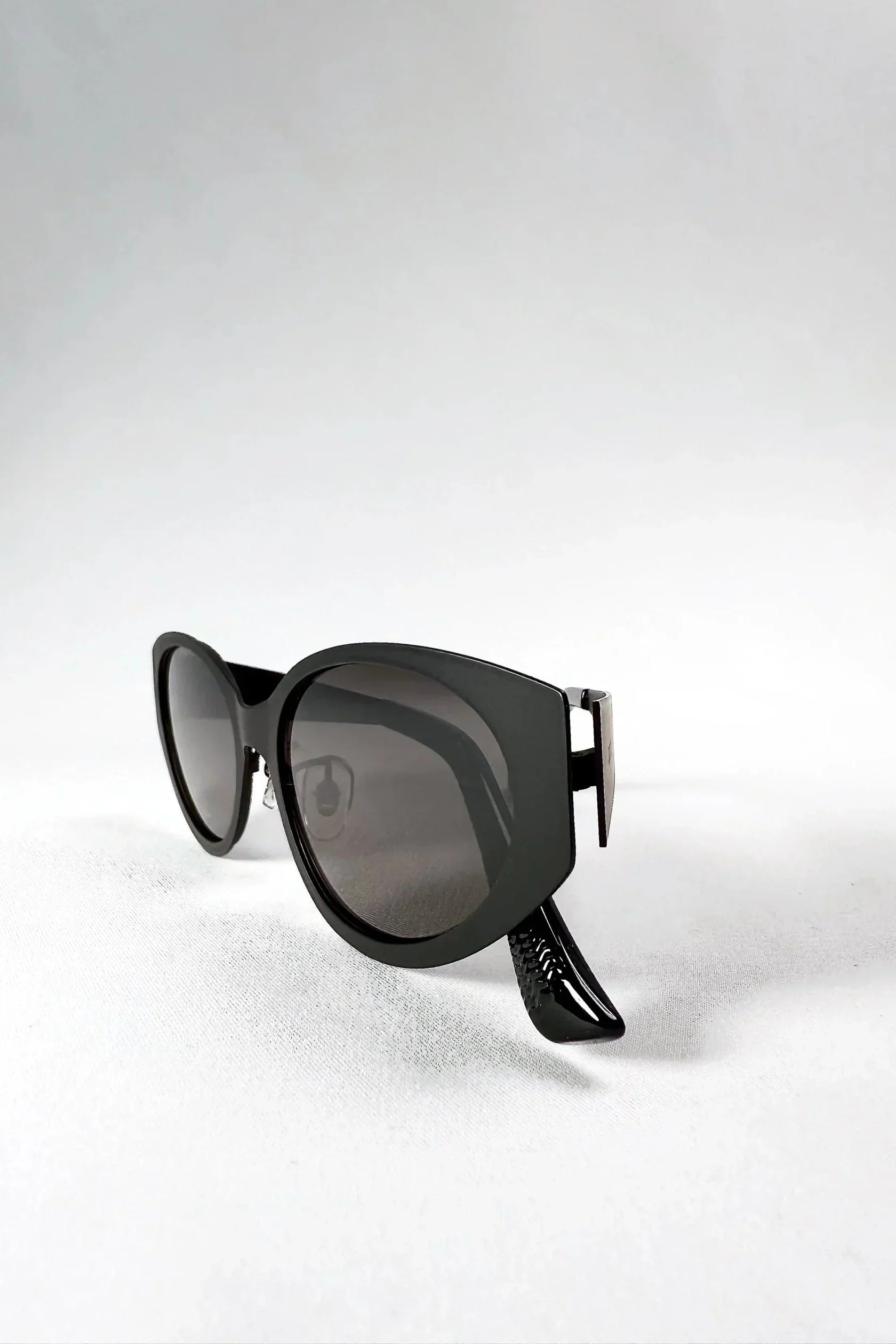 Sculpted and striking, Nyx in Shadow Black is the embodiment of bold elegance. Its full black stainless steel cat-eye frame sharpens the gaze while nylon lenses provide clarity and full UV protection.