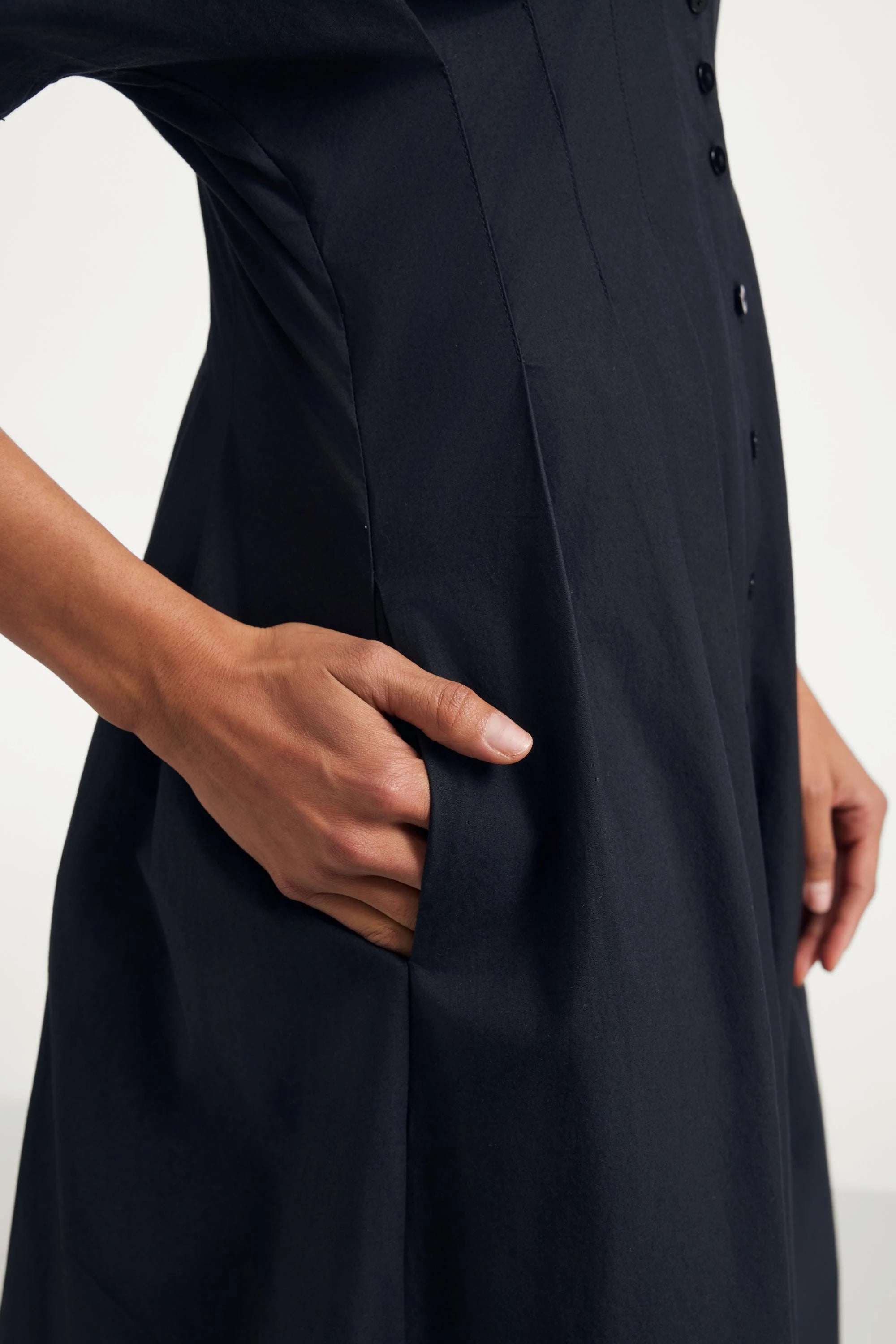 Sculpted Cotton Midi Dress - Midnight Black