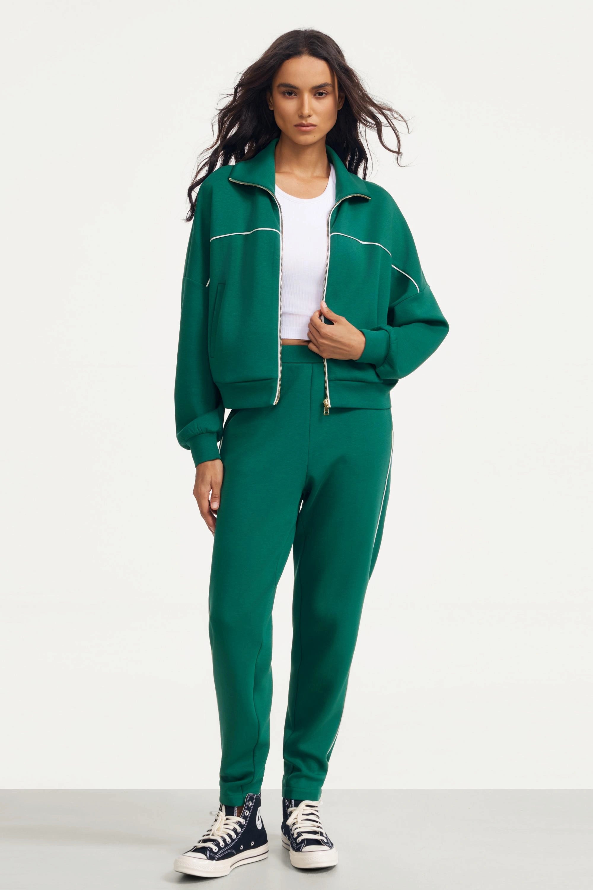 A clean, modern take on the classic track jacket—designed with soft structure, subtle contrast piping, and an effortlessly relaxed fit. This elevated layer blends sporty ease with polished design, making it the perfect throw-on piece for everyday wear.