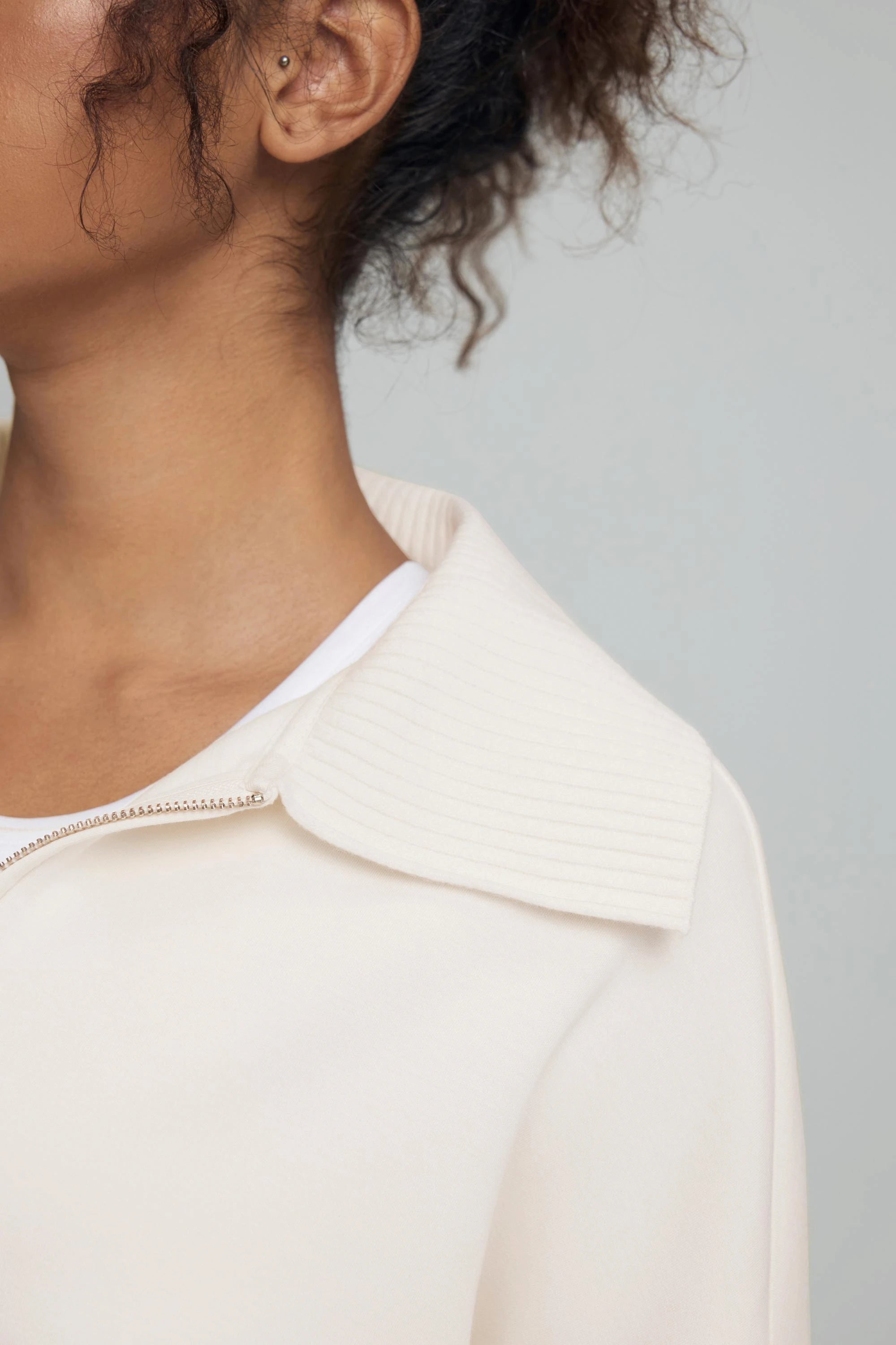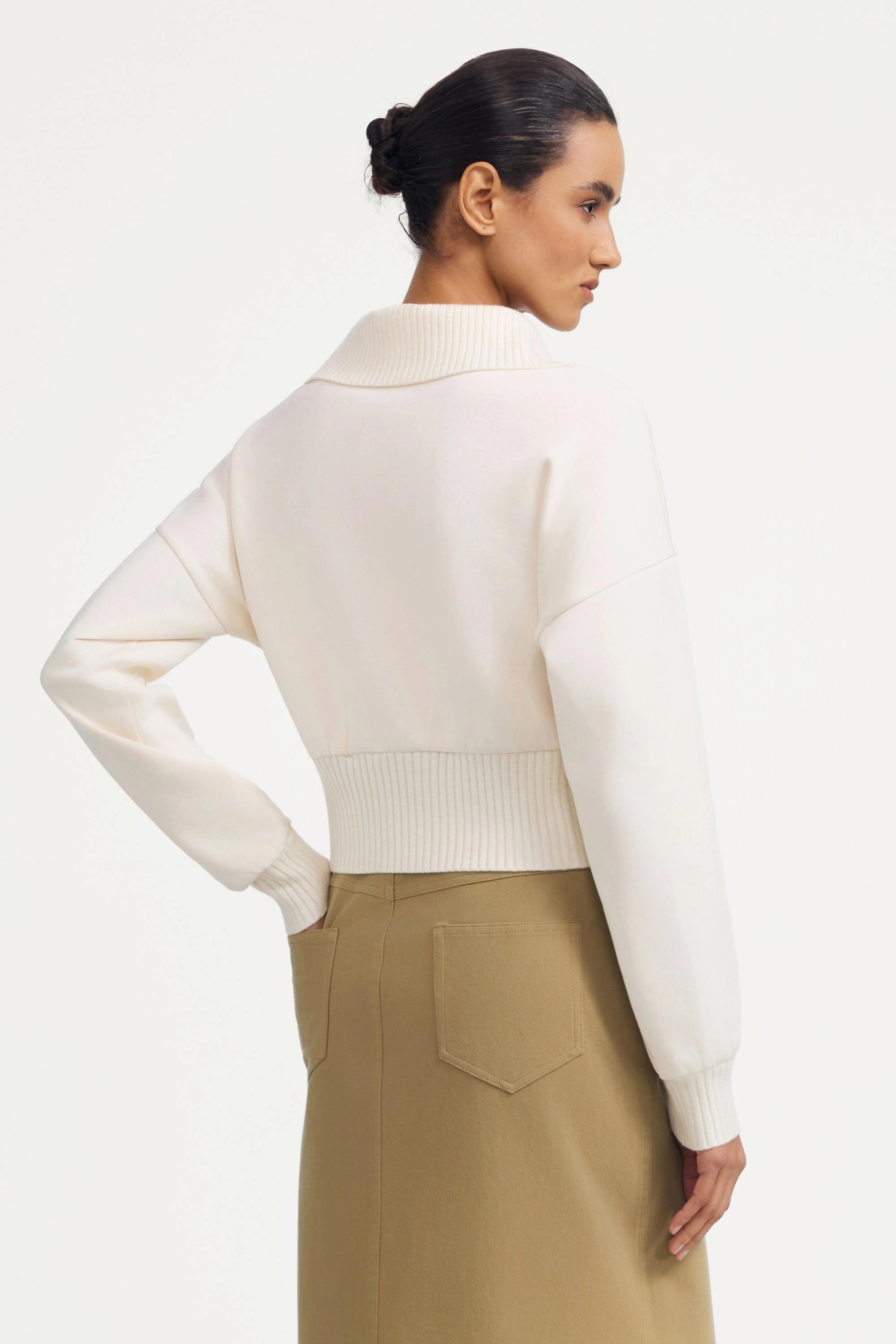 A refined layer with a sporty edge. The Zip-Front Knit Jacket features a soft structured knit with a flattering cropped length and ribbed waist that defines the silhouette without feeling restrictive. Designed with a clean collar and full zip closure, this piece blends comfort and polish—ideal for everyday wear, travel, and effortless layering.