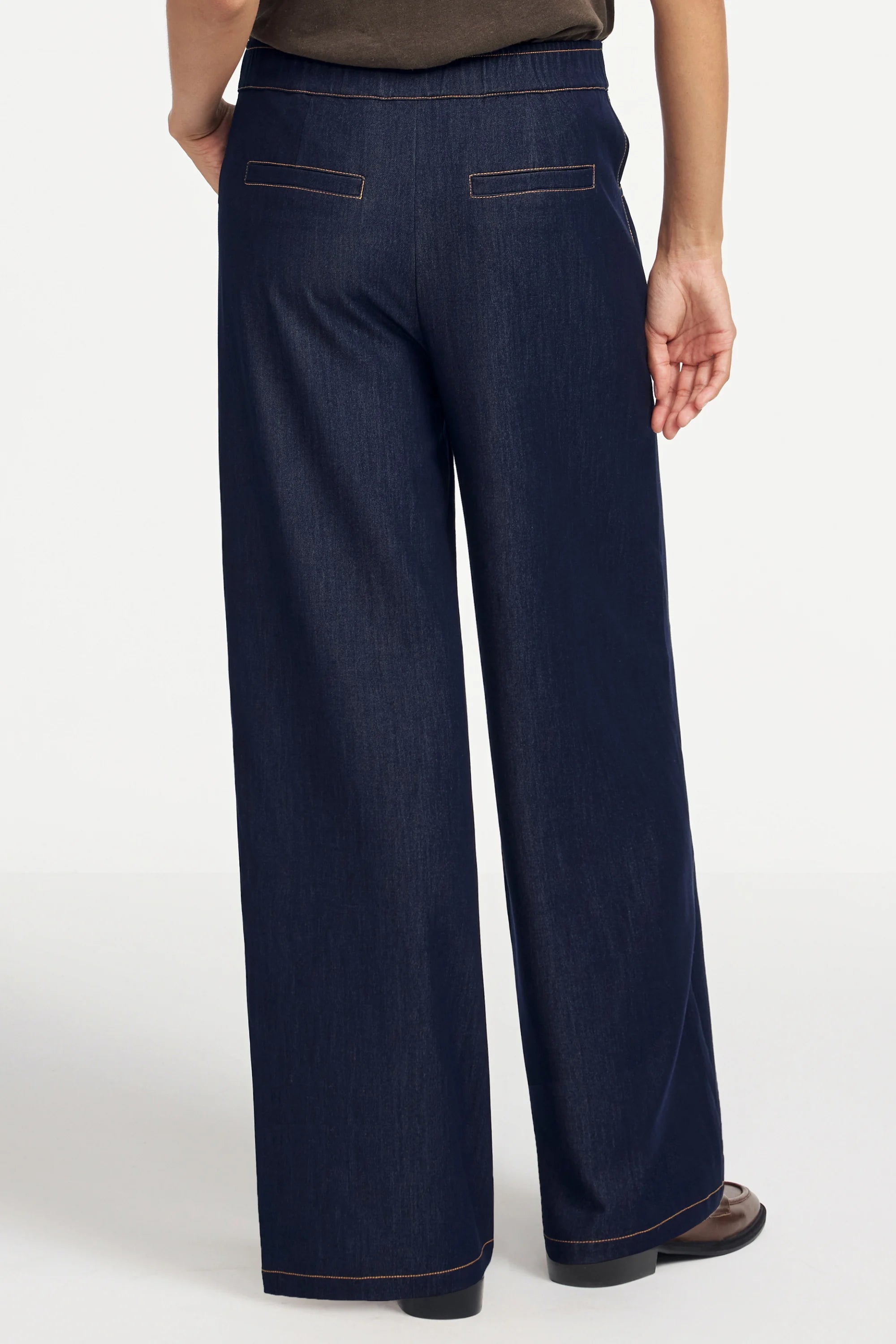 A polished upgrade to classic denim—our Tailored Wide-Leg Denim Trousers in Ink Rinse combine elevated structure with everyday ease. Cut with a flattering high-rise waist and full-length wide leg, this style features contrast stitching and a front seam detail for a clean, elongating effect. The premium cotton-blend denim holds its shape while offering comfortable movement throughout the day.